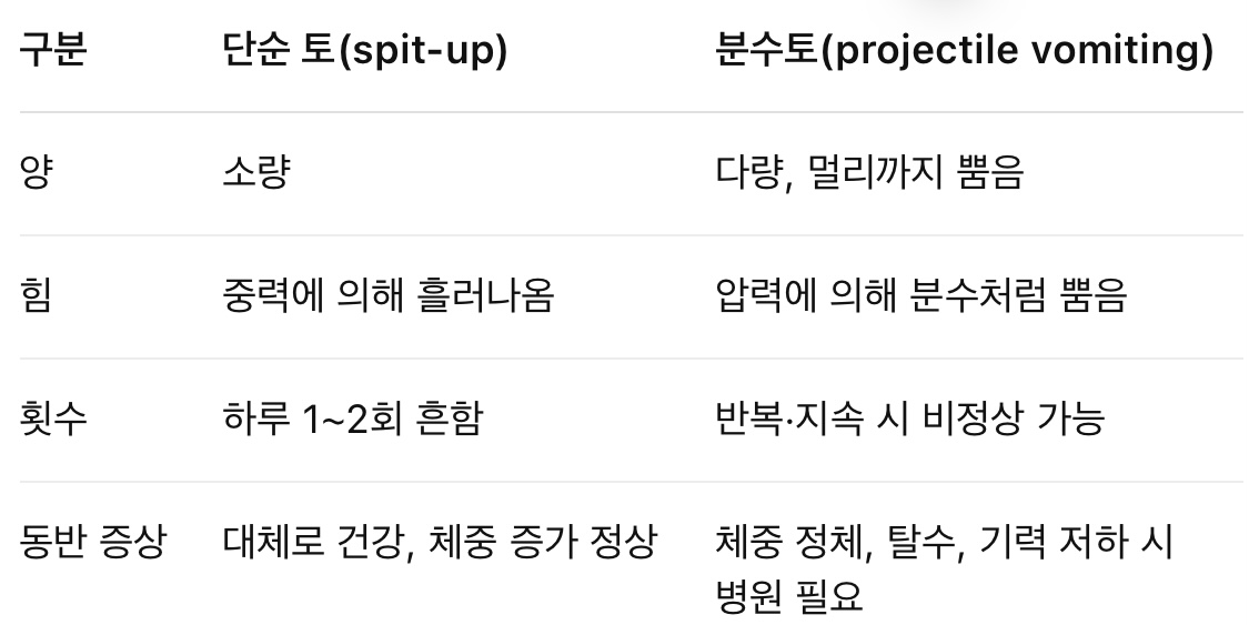 4. 분수토와 단순 토(Spit-up) 구분